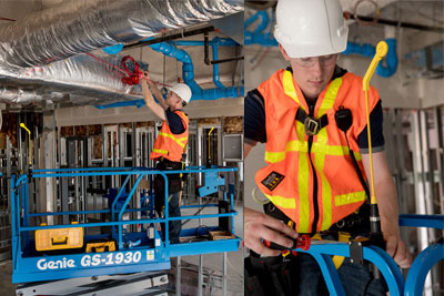 The Genie® Lift Guard™ Contact Alarm for slab scissors and vertical mast lifts innovatively alerts operators, occupants and ground personnel to the potential hazards when working at height.