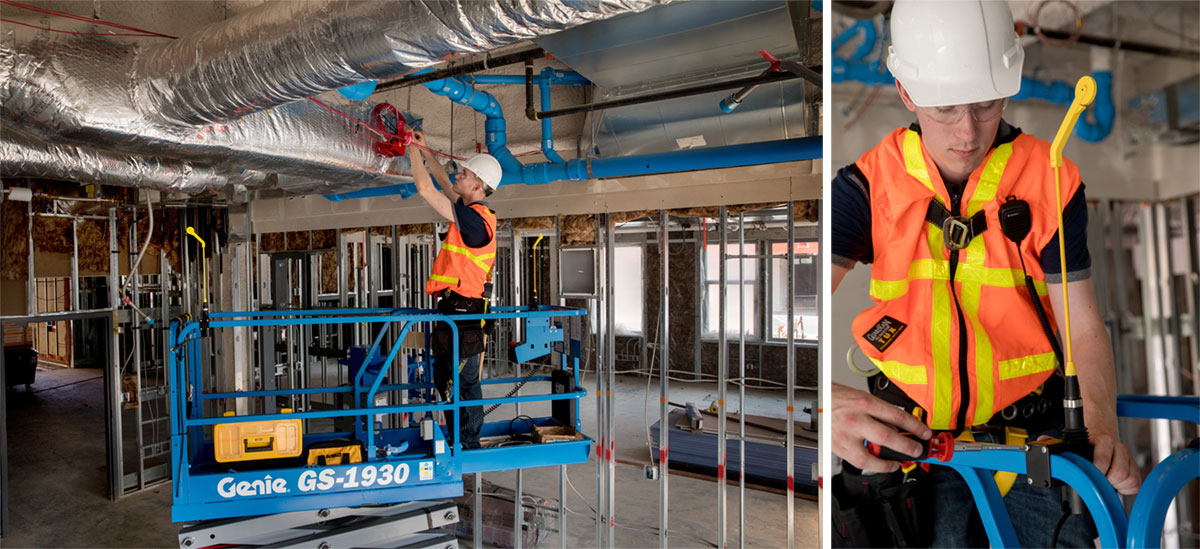 Operator safety and productivity are critical considerations in the Genie design process. The Genie Lift Guard Contact Alarm system for slab scissors and vertical mast lifts is designed to supplement a trained operator’s situational awareness and provide a secondary layer of guarding while working at height.