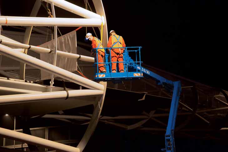 • 1.52 m (5 ft) articulating jib with a 135° vertical rotation to accurately position workers