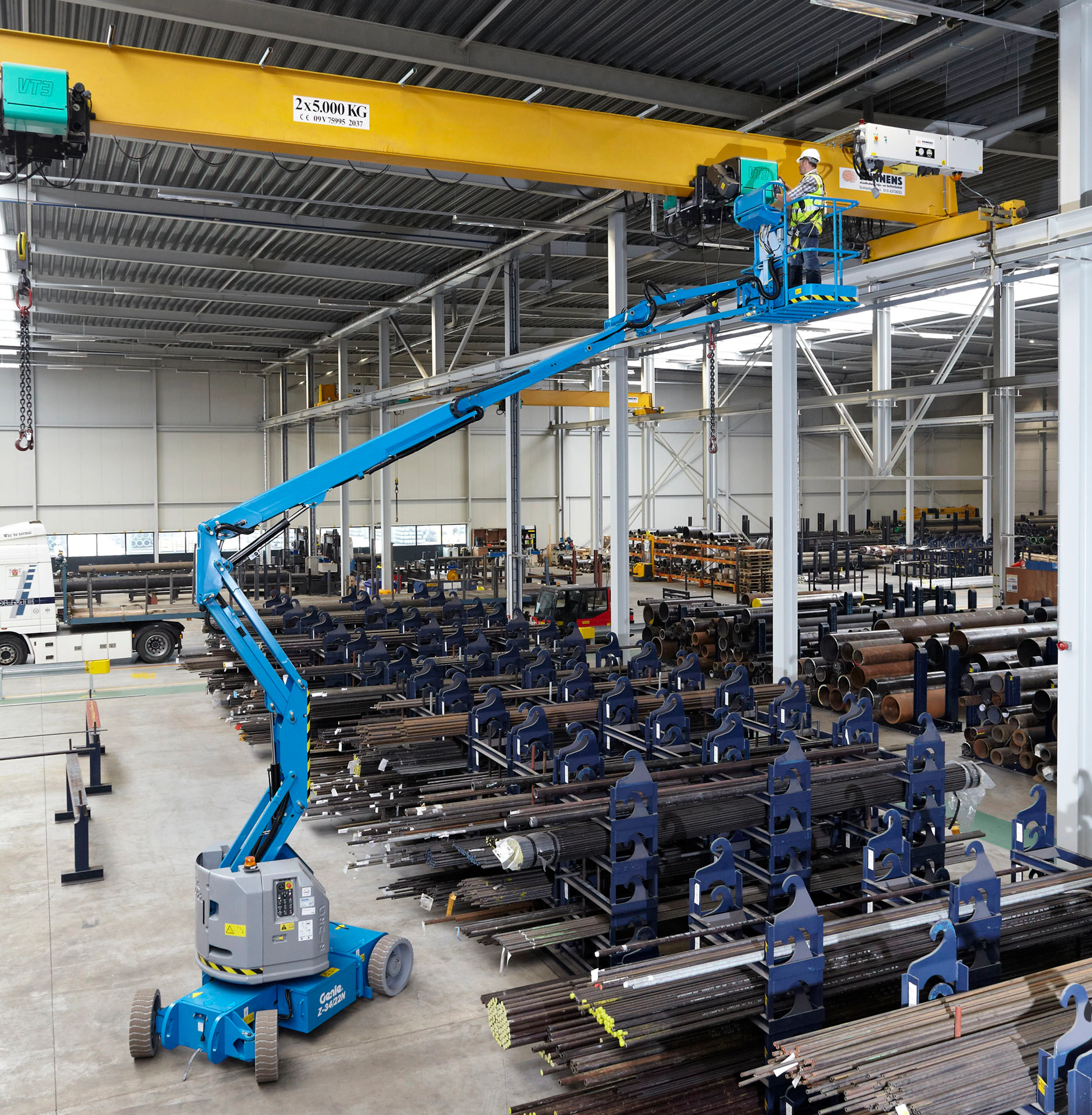 The Genie® Z®-34/22 N electric articulating boom lift offers quiet, emission-free operation in the most sensitive work environments, as a 48V DC machine.