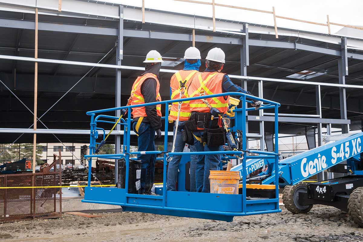 The Genie® S®-45 XC™ telescopic boom is able to perform a wider range of heavier lift tasks on construction and industrial jobsites, offering a dual lift capacity of 660 lb (300 kg) unrestricted and 1,000 lb (454 kg) restricted and up to three people on board.