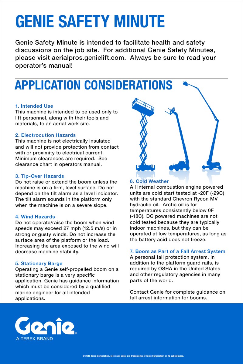 Genie Safety Minute is intended to facilitate health and safety discussions on the job site.