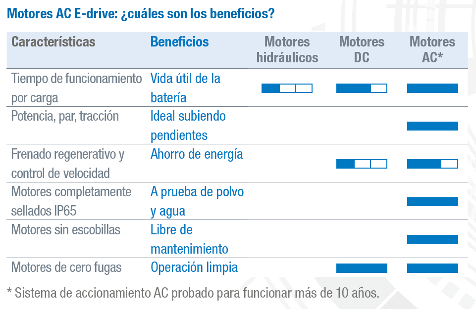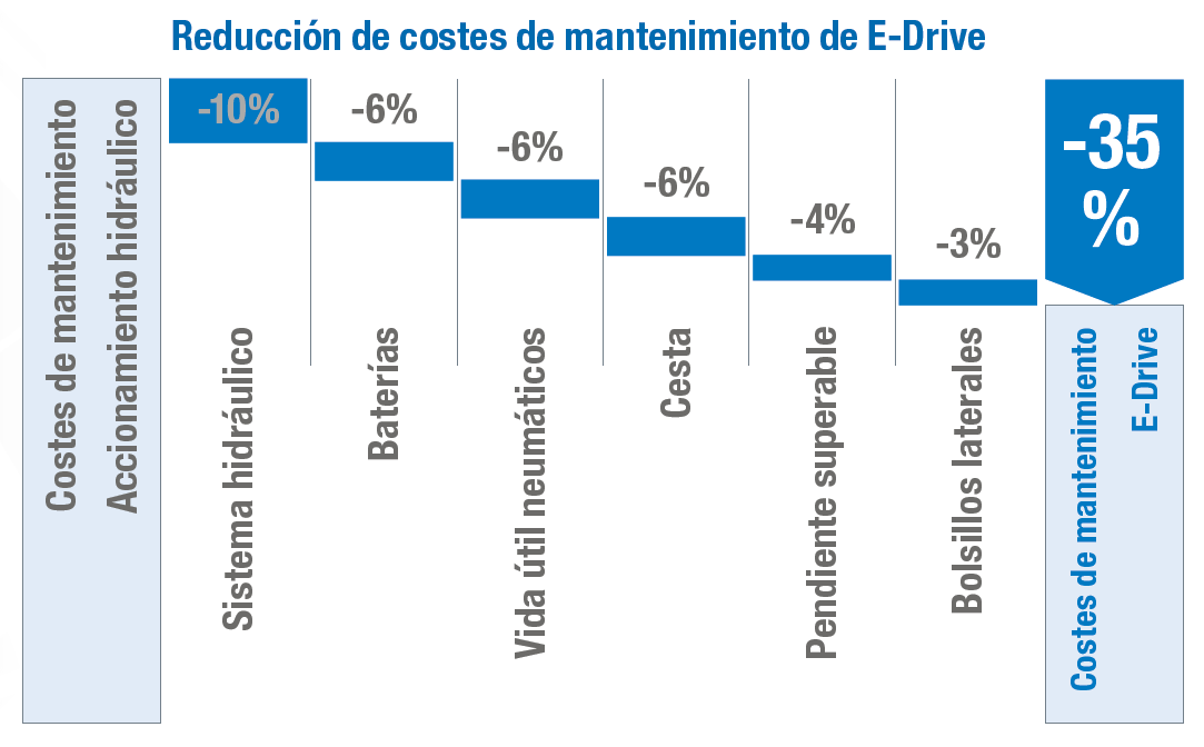 Con menos piezas móviles, mayor facilidad de reparación y accionamiento libre de fugas, cambie su forma de pensar sobre la rentabilidad de las plataformas de tijera y opte por una máquina con mejor pendiente superable y mayor tiempo de funcionamiento con una sola carga.