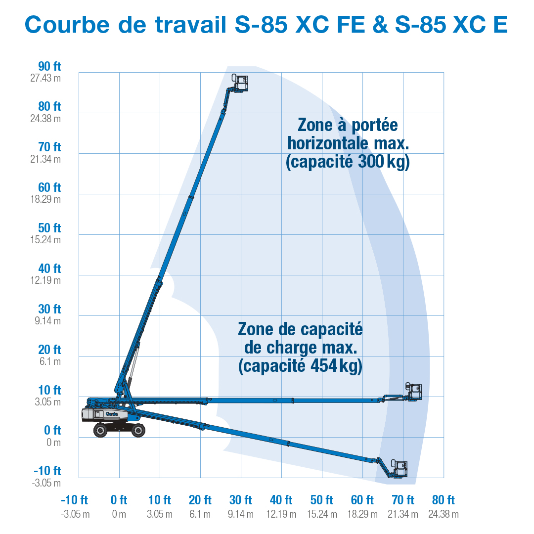 La nacelle à flèche télescopique électrique Genie S®-85 XC™ FE hybride est une nacelle électrifiée de type Xtra Capacity™ (XC) qui procure les mêmes performances qu’une machine diesel et ouvre la voie à des applications peu bruyantes et sans émissions polluantes. La fonctionnalité XC permet de transporter jusqu’à trois opérateurs, ainsi que des outils et du matériel de chantier.